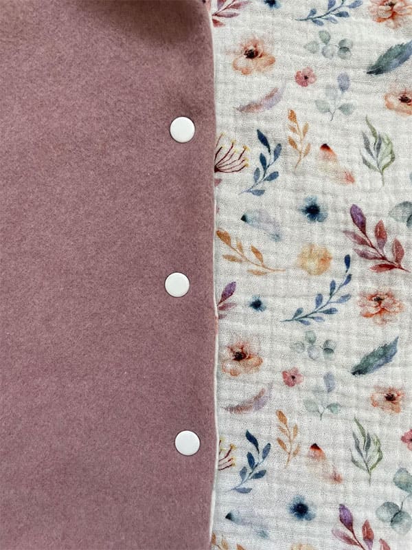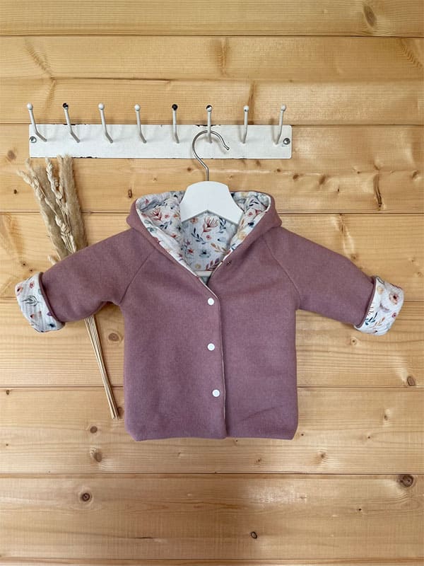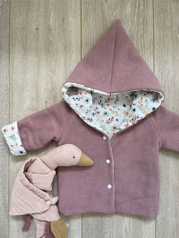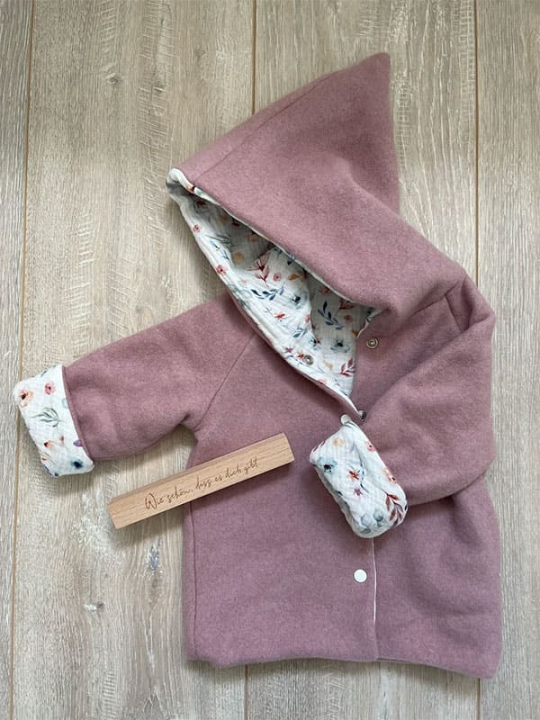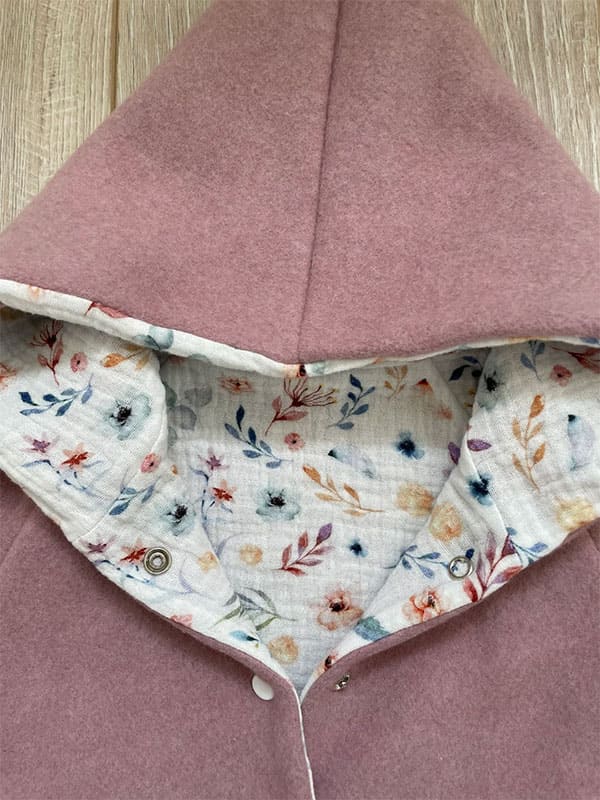 Außen schützt ein schön warmer Bio-Baumwollfleece in altrosa vor kälteren Temperaturen und Wind. Als Innenfutter haben wir einen wunderbar weichen Musselin verarbeitet.